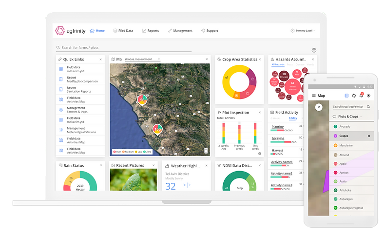 Conceptualization, development, and sale of software-hardware solutions for agribusiness and software companies. Our experience in this field has culminated in our proprietary software platform, Agtrinity, providing a comprehensive solution for active soil monitoring.